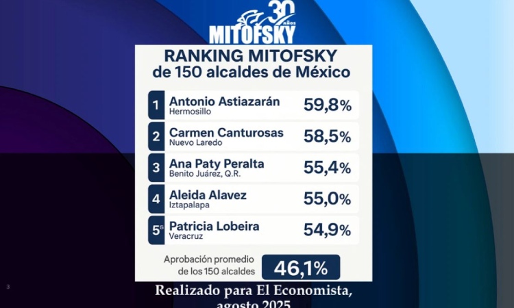 Cancún, Q. Roo, 19 de septiembre de 2025. – Al analizar la trayectoria de la presidenta municipal de Benito Juárez, Ana Paty Peralta, justo al rendir su Primer Informe de Gobierno, se nota que ha consolidado su posicionamiento en la escena política nacional y como la alcaldesa con mayor aceptación en Quintana Roo al registrar a lo largo del año 2025 un crecimiento sostenido en el Ranking Mitofsky de 150 Alcaldes de México, que se publica cada dos meses y mide la aprobación ciudadana de los gobiernos locales.