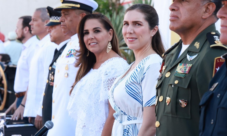 Isla Mujeres, Quintana Roo, 21 de abril de 2026.— La Presidenta Municipal de Isla Mujeres, Atenea Gómez Ricalde, asistió a la ceremonia conmemorativa por el CXII Aniversario de la Heroica Defensa del Puerto de Veracruz de 1914, realizada por la Secretaría de Marina, a través de la Quinta Región Naval, que encabezó la Gobernadora del Estado, Mara Lezama Espinosa, dándole realce al evento.