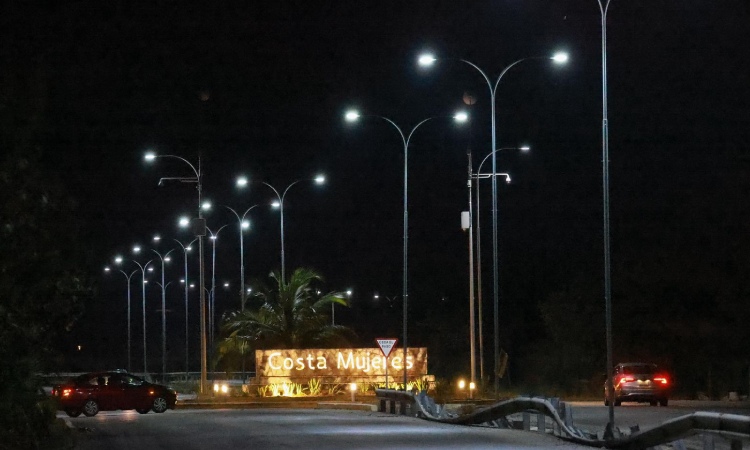 La alcaldesa, reiteró que en Costa Mujeres se instalaron luminarias nuevas en 11.5 kilómetros de la vialidad, desde los límites con Benito Juárez hasta Costa Mujeres.
