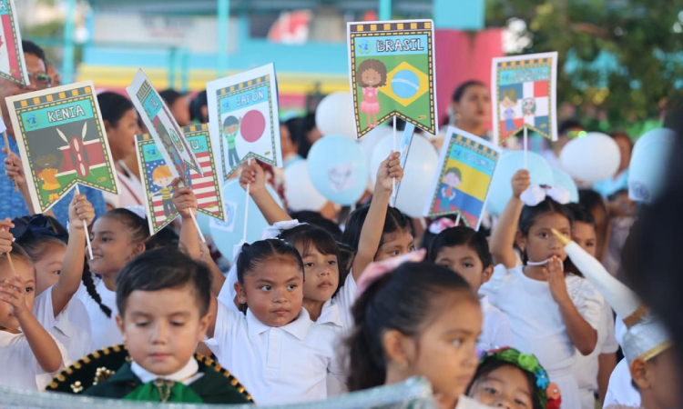 En dicho desfile, que recorrió parte de la prolongación Avenida Jesús Martínez Ross, hasta llegar al Domo Bicentenario, en donde las niñas y niños de diferentes jardines y de 1er año de primaria del municipio, portaron banderas de distintos países; posteriormente se realizó un festival con la presentación de cantos y bailables, el cual disfrutaron los padres de familia, maestras y maestros.
