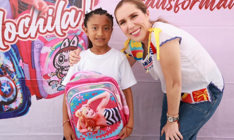 Isla Mujeres, Quintana Roo a 01 de septiembre de 2025.-La Presidenta Municipal, Atenea Gómez Ricalde, entregó mochilas nuevas del Programa Transformando la Educación: Mi Mochila, a las niñas y niños de Zona Agrícola y de la comunidad de Francisco May.