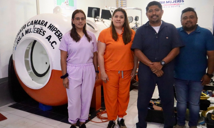 Isla Mujeres, Quintana Roo, 16 de abril de 2026.- Como parte de las acciones permanentes para fortalecer los servicios de salud dirigidos a la población y, de manera prioritaria, al sector pesquero, el Gobierno Municipal que encabeza la Presidenta Municipal Atenea Gómez Ricalde llevó a cabo el mantenimiento integral de la Cámara Hiperbárica, conforme a la programación establecida, con el objetivo de mantener en óptimas condiciones esta infraestructura médica esencial.