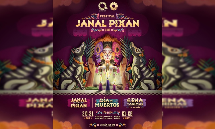 Cancún, Q. R., a 29 de octubre de 2025.- El Ayuntamiento de Benito Juárez, invita a los cancunenses y visitantes a asistir al Festival “Janal Pixan 2025”, a la “Cena de Ánimas” y al “Día de Muertos”, que se llevarán a cabo el 30 y 31 de octubre, así como el 01 y 02 de noviembre en distintos puntos de la ciudad, con un amplio programa cultural, artístico y gastronómico.