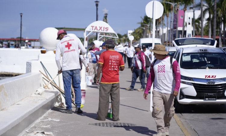 Por su parte, Héctor Martínez explicó que, a través del área de Servicios Generales de la dirección de Servicios Públicos, actualmente se realizan trabajos integrales de mantenimiento en todo el malecón, los cuales consisten en un raspado completo de la pintura dañada, la aplicación de una primera base con sellador acrílico como pintura primaria, posteriormente una capa de pintura epóxica color blanco y, finalmente, un acabado con material de poliuretano que permite resaltar el color y el brillo de las bancas y estructuras del malecón.