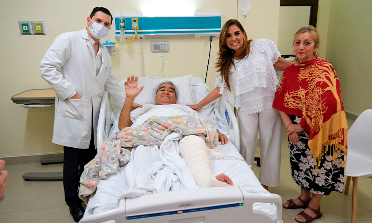 Chetumal.- La gobernadora Mara Lezama Espinosa visitó a pacientes de la Jornada Protésica de Rodilla que permitió mejorar la calidad de vida de 12 personas, resultado gracias a las gestiones de más de un millón 200 mil pesos de recursos federales de la Beneficencia Pública.