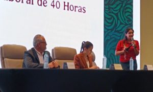 Por su parte Quiahuitl Chávez Domínguez, subsecretaria de Empleo y Productividad Laboral de la Secretaria Federal del Trabajo, destacó que la semana laboral de 40 horas, es uno de los 100 compromisos que presentó la presidenta Claudia Sheinbaum Pardo para el segundo piso de la cuarta transformación.