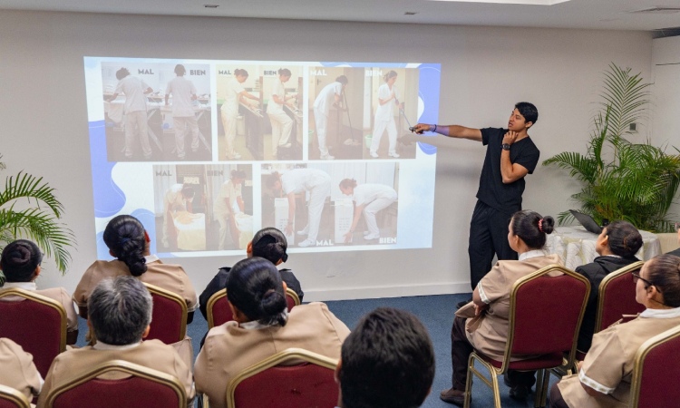 Cozumel, Quintana Roo, a 14 de octubre de 2025.- El Sistema DIF Cozumel, presidido por Diana Sosa Blanco, ofreció el taller gratuito de “Mecánica Corporal” a colaboradores del Hotel Secrets Aura, con el objetivo de promover el uso correcto del cuerpo, evitar lesiones y reducir la fatiga en tareas que implican movimiento y levantamiento de peso.