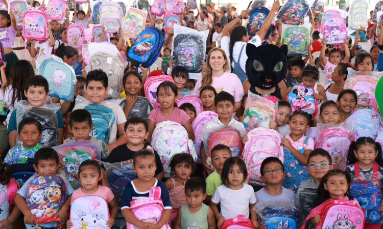 La Presidenta Municipal, Atenea Gómez Ricalde, destacó que en todo el municipio se entregarán un total de 5 mil mochilas, gracias a las donaciones realizadas por empresas socialmente responsables, a quienes agradeció de manera profunda por sumarse a esta noble causa.
