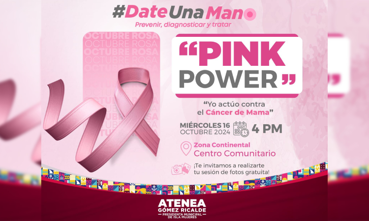 Isla Mujeres, Quintana Roo, 15 de octubre de 2024.-En el marco del Mes Rosa, como parte del programa de la campaña “Date una Mano”, que impulsa la Presidenta Municipal, Atenea Gómez Ricalde, esta semana se realizarán diversas actividades que buscan sensibilizar y crear conciencia en las mujeres sobre la prevención y detención oportuna del Cáncer de Mama.