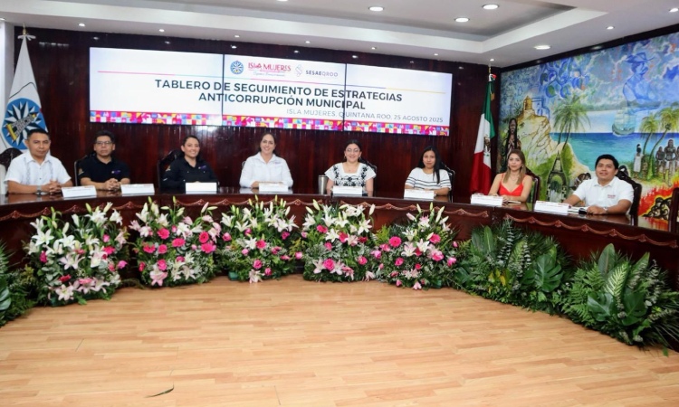 Isla Mujeres, Quintana Roo a 25 de agosto de 2025.-Refrendando su compromiso con la transparencia y el combate a la corrupción, el Gobierno Municipal que encabeza la alcaldesa Atenea Gómez Ricalde, a través del Órgano Interno de Control (OIC), realizó una reunión en la Sala de Cabildo para presentar avances y resultados del Tablero de Seguimiento de Estrategias Anticorrupción.