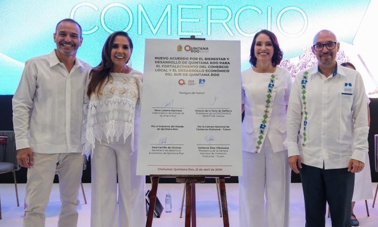 Durante la toma de protesta de la Mesa Directiva 2026 de la CANACO Chetumal Tulum sirvió de marco para la firma del Nuevo Acuerdo por el Bienestar y el Desarrollo de Quintana Roo para el Fortalecimiento del Comercio Local y el Desarrollo Económico del Sur.