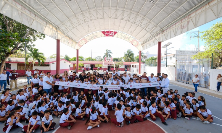 Acompañada del presidente municipal Diego Castañón Trejo y de la presidenta honoraria del Sistema DIF Quintana Roo, Verónica Lezama Espinosa, la titular del Ejecutivo pidió a los alumnos que usen el domo para sus actividades, pero también para hacer deporte.