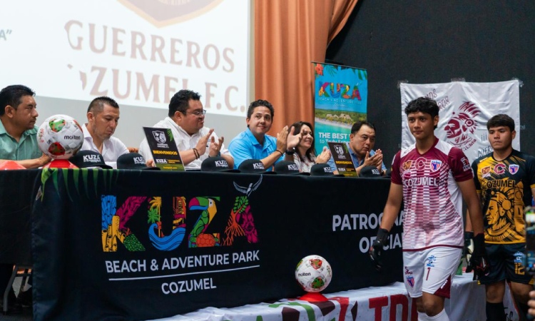 Cozumel, 03 de octubre del 2025. – El Presidente municipal, José Luis Chacón Méndez encabezó en el auditorio del Planetario Cha’an Ka’an la presentación oficial del equipo Guerreros Cozumel FC, que pondrá a la isla nuevamente en la órbita de la tercera división profesional del balompié mexicano, tal y como sucedió con el legendario Huracanes de Cozumel.