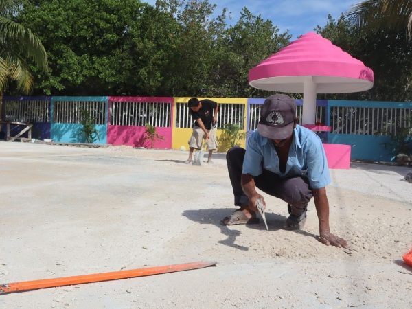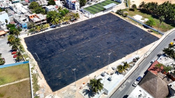 Isla Mujeres, Quintana Roo, a 11 de marzo de 2026.– La construcción de la nueva cancha de fútbol soccer en la colonia Salinas, en...