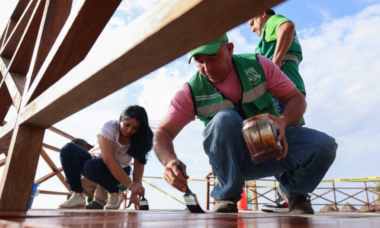 Acompañada por el secretario de Servicios Públicos, Leonel Salazar Trejo, la alcaldesa recorrió ambas zonas donde se realizan acciones como pintura en decks o plataformas, guarniciones, renovación de luminarias, poda de áreas verdes, colocación de señalética y contenedores para residuos.