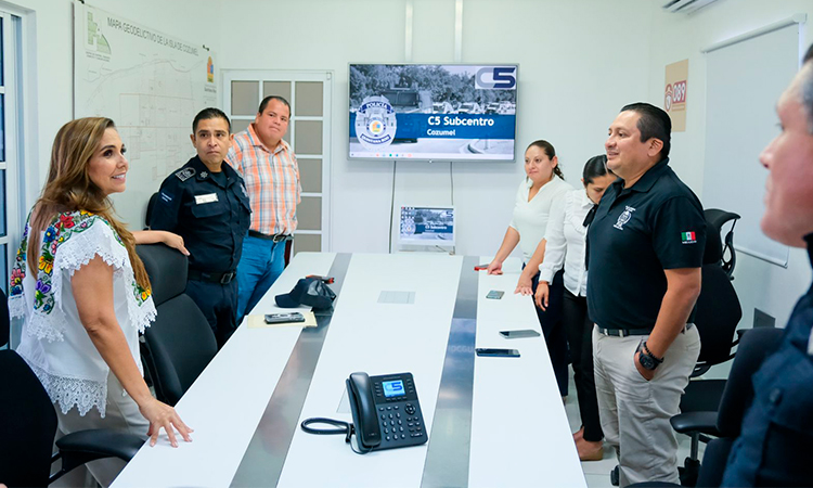 Cozumel.- Para supervisar la interacción entre el nuevo Centro de Comando y Control C2 de esta isla y el subcentro regional del C5 del gobierno del estado, la gobernadora Mara Lezama Espinosa realizó un recorrido por las instalaciones con los que se incrementa la vigilancia para fortalecer la seguridad de los millones de cruceristas y turistas que la isla recibe año con año.