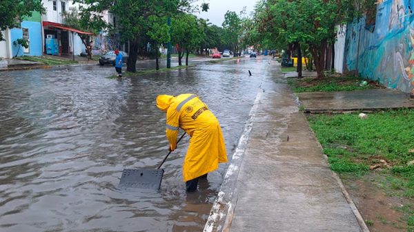 Playa del Carmen, Solidaridad a 14 de junio del 2024.- Por la incesante lluvia desde la noche de ayer y esta madrugada, brigadas de...