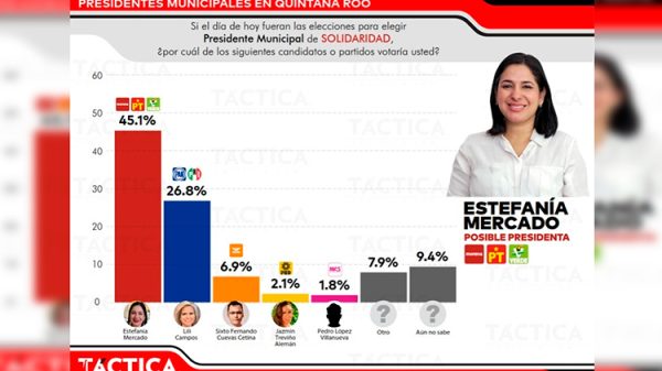 Con 45.1% de las preferencias electorales, Estefanía Mercado sigue arriba 18.3 puntos de Lili Campos Si las elecciones fueran hoy, la coalición “Sigamos Haciendo...