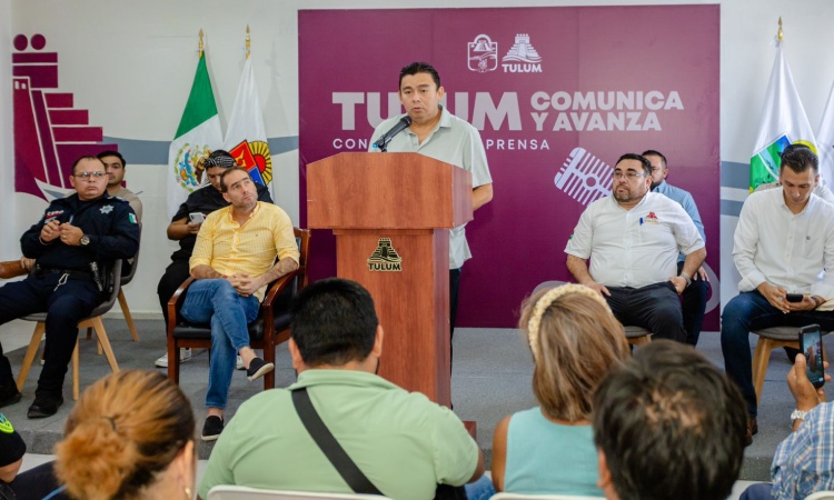 Tulum, Quintana Roo a 21 de julio de 2025. “Somos una administración de transformación y construcción, y estamos aquí para resolver y responder”, afirmó el presidente municipal, Diego Castañón Trejo, durante la conferencia semanal de medios a comunicación, que realiza acompañado de todos los Directores Generales de su gobierno. Este encuentro tiene como objetivo informar a la población sobre las acciones más relevantes que se llevan a cabo.